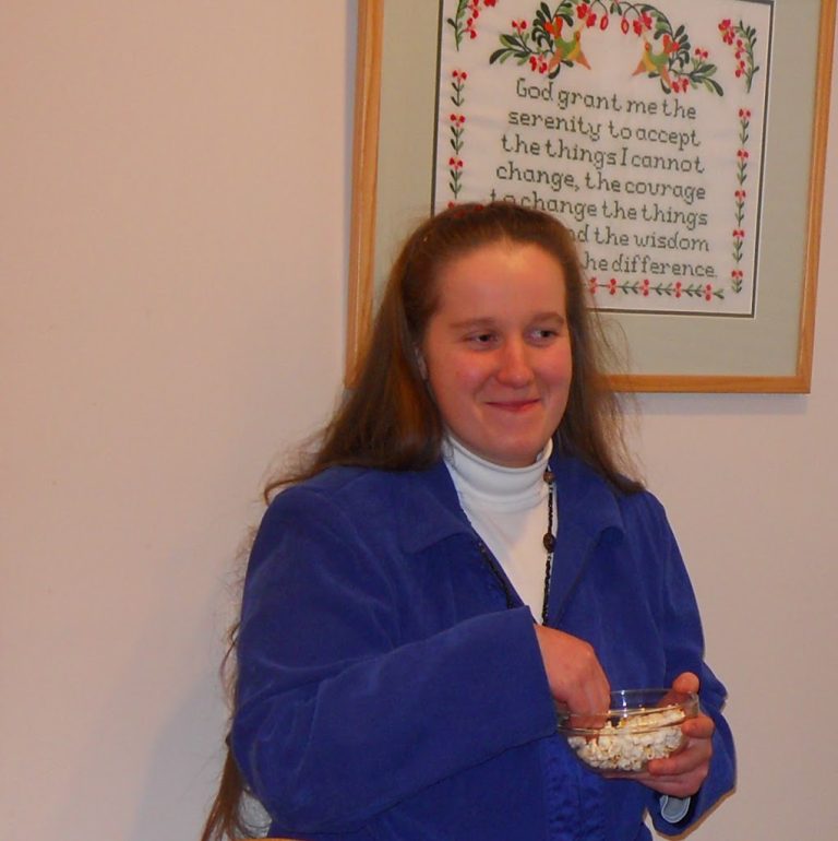 | Anna enjoying an “Amish” Sunday night. |