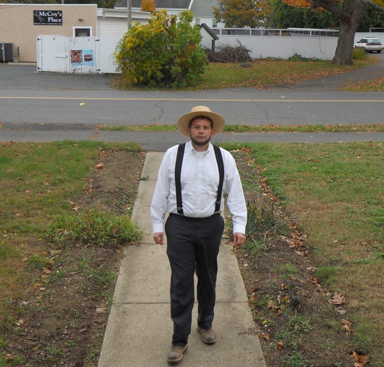 I don’t know if Paul had already planned this before our conversation, but he ended up dressing up as an Amish man and shaved off his mustache, leaving an Amish-looking beard for a Halloween party he attended. I asked if I could take photos of him, and he was fine with that. Here is one: