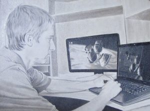 An unfinished portrait of Leon at his desk by his late friend Daniel Fisher