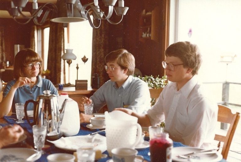 David's last breakfast as a single man: On his right is his sister, Bernadette, and his brother Dan on his left
