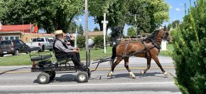 Whenever I maneuver our car around a buggy, I’m always aware of what it feels like to be riding in a buggy and vulnerable to car drivers. In fact, I can easily put myself in a buggy to see the sights and sounds from a slow-moving vehicle, feel the summer breezes on my face, and hear the clip-clop of the horses’ hooves and the rumble of the steel wheels on the road. I know I’m sounding nostalgic here, and that is because I do miss those aspects of my Amish life. And yet just today, I have verbalized to David how grateful I am that he and I got together (those who have read Bonnet Strings know that we almost didn’t). Had I stayed Amish, I would not be living the life I have. So those buggy rides that used to transport me from one place to another are a thing of the past. I’m glad I have those memories to cherish.