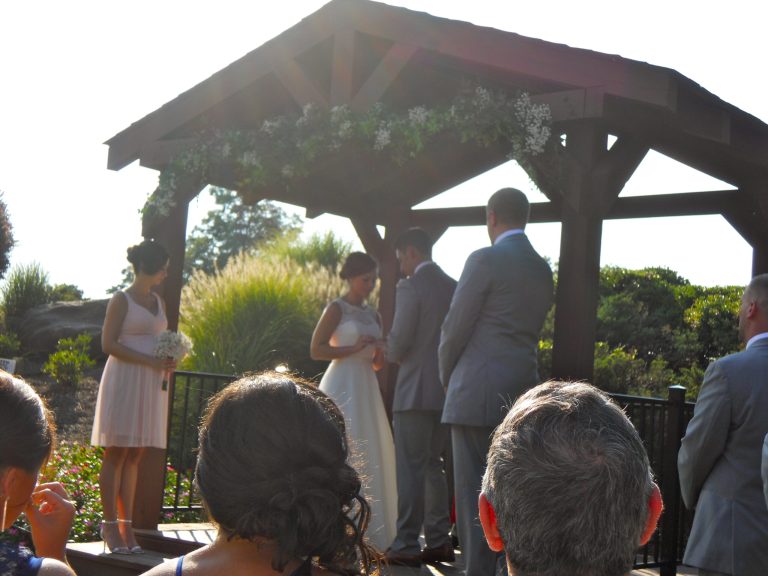 And then there was the wedding on Saturday. The ceremony was outdoors, and we were looking into the sun, so it was hard to get good photos. Here is one of David’s: